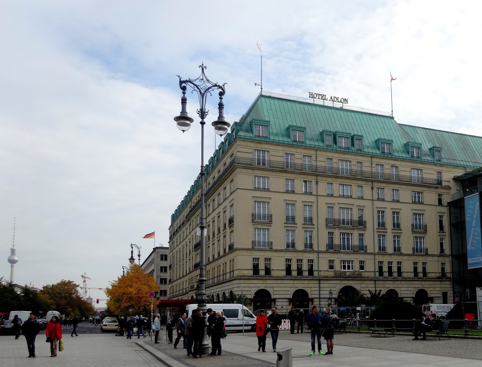 The Hotel Adlon - the most luxurious hotel in Berlin. This is where Queen Elizabeth stayed during her State visit to Germany earlier this year. The original Hotel Adlon was built in 1907 and became the social centre of Berlin, famous people who stayed there include Czar Nicholas II, Henry Ford, Charlie Chaplin and Marlene Dietrich.It survived WW2 virtually undamaged but was destroyed in 1945 by a fire started by drunken Red Army soldiers! The current Hotel Adlon was re-opened in 1997.